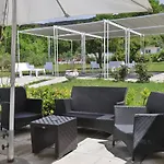 Förutom att det finns utsikt över uteplatsen, ingår även skrivbord i inredningen. Gästerna kan njuta av mediautrustning som plattskärms-TV med satellitkanaler, tillsammans med luftkonditionering för en riktigt bekväm vistelse. I badrummet finns en bidé och en separat toalett samt badlakan och handdukar.
